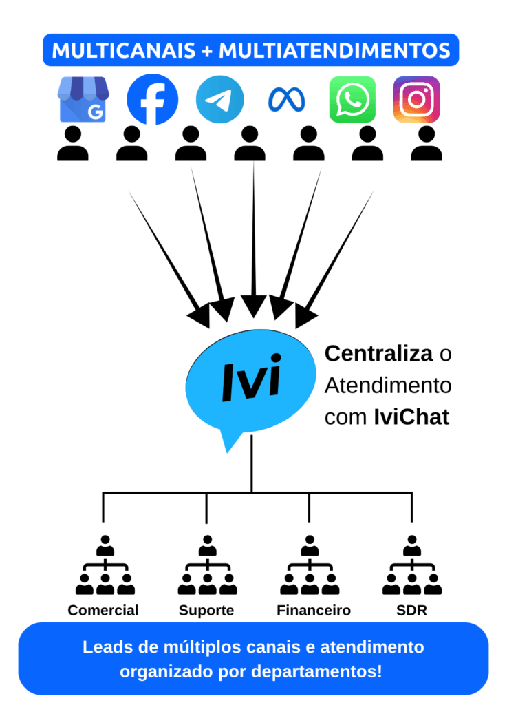 Atenda todos os canais em uma única tela, receba os contatos de vários canais tudo no IviChat!